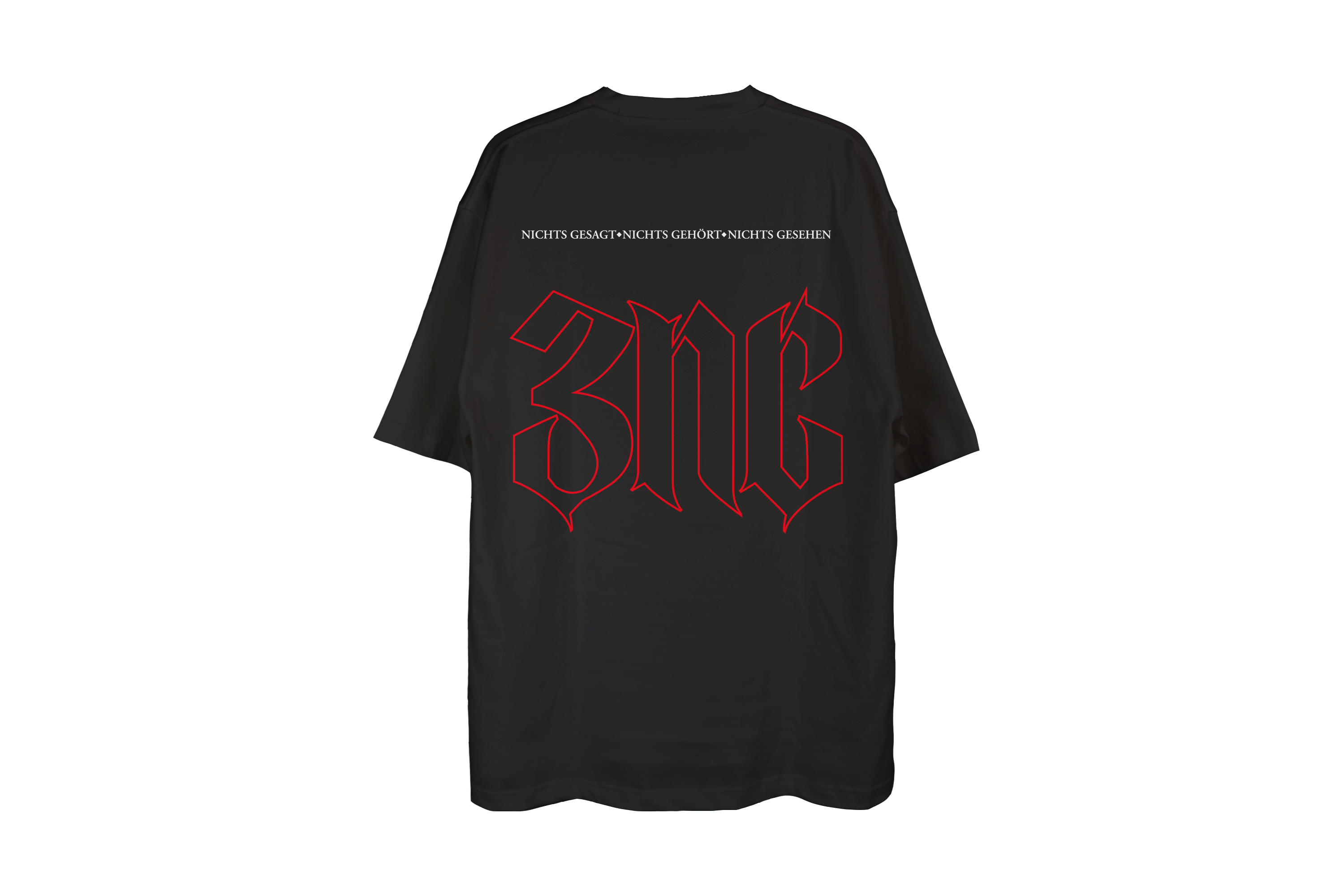 Tauche ein in die Welt des Statements mit unserem exklusiven 3NG Logo T-Shirt aus hochwertiger Baumwolle. Die Vorderseite präsentiert stolz unser markantes 3NG-Logo auf der linken Brust. Die Rückseite trägt die kraftvolle Botschaft “Nichts gesagt, nichts gehört, nichts gesehen” in großem Format, verkörpert Freiheit und Unabhängigkeit. Mit roten Konturen verleiht unser Logo dem Shirt Dynamik und Individualität. Ein bequemer Schnitt und weiches Baumwollmaterial garantieren angenehmen Tragekomfort. Dieses Shirt ist oversize und nur limitiert in der Farbe Schwarz erhältlich. Es sind nur die Größen XL und 2XL verfügbar. Hol dir jetzt ein Statement mit Stil!